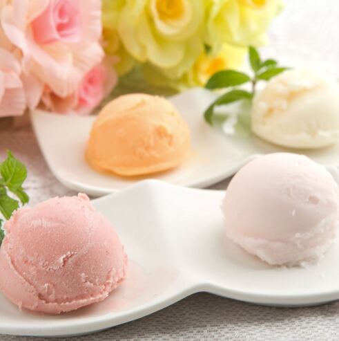 岡山県産清水白桃の果汁を使い、まろやかな甘味がうれしいソルベ。