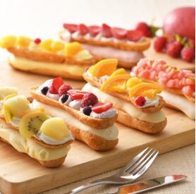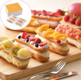 シュークリーム専門店「クレーム デ ラ クレーム」がお届けするエクレアタイプのシューアイス。フルーツや彩り鮮やかなクリームで華やかに飾りつけたまるでデコレーションケーキの様なシューアイスです。