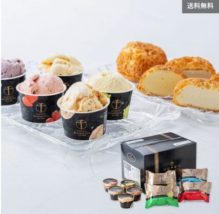 銀座千疋屋が厳選した果汁が香り高く濃厚なクリームと調和したまさにプレミアムなアイスと、厳選したフルーツ果汁と北海道産生クリームを使用したなめらかなアイスクリームをシュー生地にクッキー生地をのせて焼いたサクサク食感のクッキーシューに閉じ込めたプレミアムシューアイスの詰め合わせセットです。