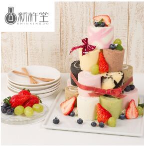 岐阜 「新杵堂」 ロールケーキタワーは、厳選された素材を使用し、職人の手作りによる極上のスイーツです!繊細なスポンジ生地の間にクリームとフルーツが贅沢に詰め込まれた、見るだけでワクワクするタワー型のロールケーキは、特別な日のデザートやパーティーのおもてなしにもぴったりです。