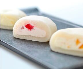 北海道生クリームに岡山県産清水白桃、瀬戸内産レモン、そしていちごのダイスカットを加え、マシュマロのように柔らかく、ふわふわなお餅で包みこみました。